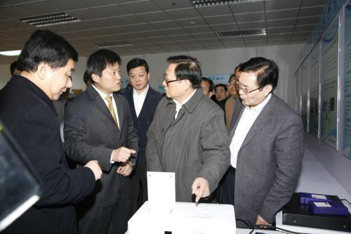 隨后,華委員長(zhǎng)還參觀了江蘇數(shù)字信息產(chǎn)業(yè)園智能傳感研發(fā)中心。智能傳感研發(fā)中心主任張超博士對(duì)“基于物聯(lián)網(wǎng)的智能交通解決方案”做了詳細(xì)匯報(bào)。他解釋各種交通傳感器,將感知到車流量、車速、車型、車牌、車位等各種交通信息,通過無(wú)線傳感器網(wǎng)絡(luò)傳送到位于高速數(shù)據(jù)傳輸主干道上的數(shù)據(jù)處理中心,服務(wù)器通過對(duì)各種交通信息的綜合分析,了解到當(dāng)前的交通狀況,來控制交通信號(hào),進(jìn)而影響車輛,達(dá)到與車的互動(dòng),并且將交通信息發(fā)布出去,達(dá)到與人的互動(dòng),體現(xiàn)出物聯(lián)網(wǎng)時(shí)代的智能交通系統(tǒng)給人類社會(huì)提供的巨大便利。