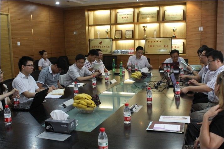 葉華民首先對格洛弗博士的來訪表示歡迎,并對江蘇數字信息產業園在產學研結合模式、總體規劃、發展思路以及園區企業整體運行狀況進行了介紹。隨后班謙還對當前國家、省、市等相關科技政策進行解讀,希望能為弗蘭德·格洛弗博士在科技項目對接等方面提供幫助。