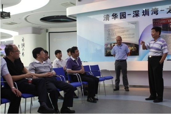 在展廳參觀中,秦總首先向大家介紹了園區載體建設和孵化體系搭建等具體情況,并就開園以來園區在引進人才、項目、技術及專利方面所獲得的成果作了闡述。馮冠平董事長向大家講述了深圳清華大學研究院與園區之間的重要關系,他表示,數字園立足惠山,主要目的是要在惠山地區發展高科技,促進傳統產業的升級換代。對于園區的建設、記憶機制體制的確定,曹廳長和馮董事長進行了深刻的探討。