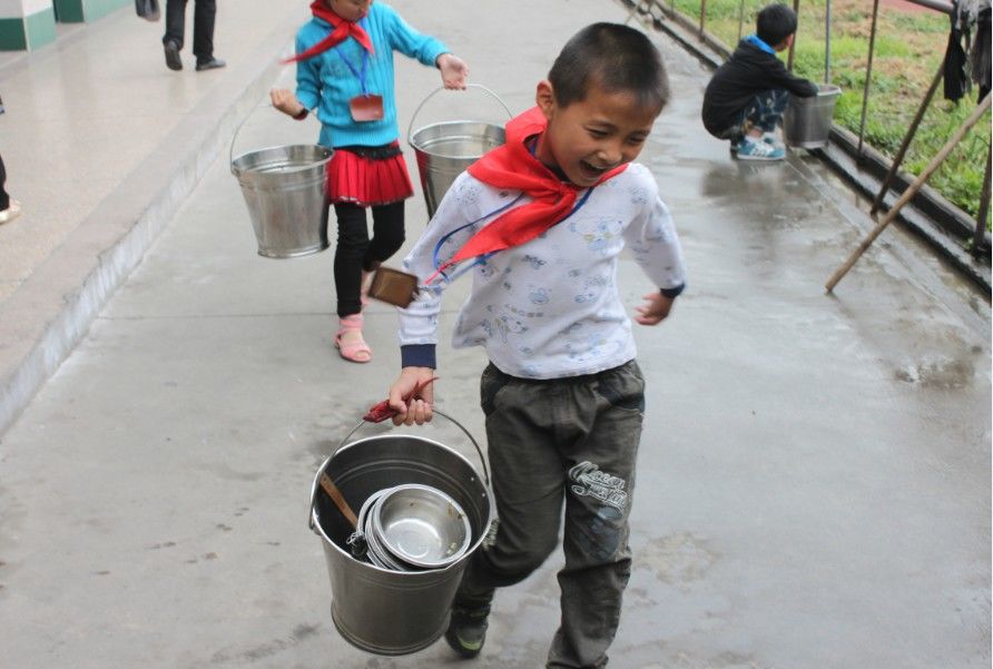 午飯時(shí)間,稚氣未脫的孩子們拿著飯盒有序的打飯,吃過之后還認(rèn)真的洗刷碗筷,打掃教室,那股認(rèn)真勁兒,帶給我們的不只是感動(dòng),更是對(duì)他們的期待和信任。