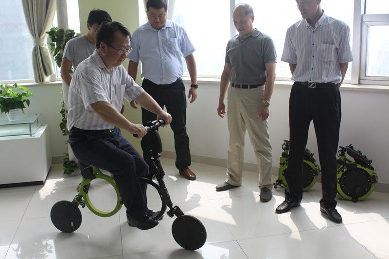 隨后,調研小組參觀了園區的無錫科樂威爾智能科技有限公司。無錫科樂威爾智能科技有限公司董事長何宇波介紹了公司近兩年的發展情況和研發情況,并介紹了最新研發的產品“兜納系列K1“。該產品造型小巧,四步實現全折疊,折疊后大小僅為2張A4紙;整車僅為9.8KG,是傳統電動車重量的十分之一;隱藏式電池,通過智能APP可實現人車互聯,GPS定位等特點,是全球首創可穿戴式智能交通工具。楊建平主任饒有興致的在現場試騎了“兜納“,他興奮地表示電動車是一個老行業,但科樂威爾賦予了這個行業新的生命,他強調對于科研型企業開發區將給予更大的支持,技術創新會讓傳統產業煥發活力,并實現超越。