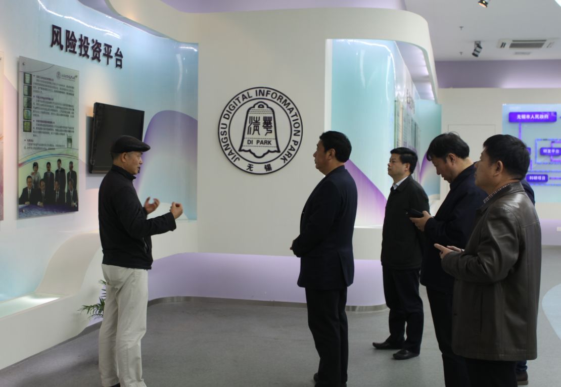賈總向考察團介紹了園區的整體情況,數字園是深圳清華大學研究院與無錫市政府在2008年9月合作設立的集政、產、學、研、資為一體的高科技園區,園區充分利用深圳清華大學研究院的創新孵化模式,重點培育數字信息、新材料新能源兩大特色產業。園區成立九年來,已投入使用科技載體40萬平方米,累計入駐企業476家,在孵企業358家,累計形成產值150億元,4家企業成功上市,6家企業進入上市輔導期,申請知識產權1000多項,累計引進高層次人才100多人。