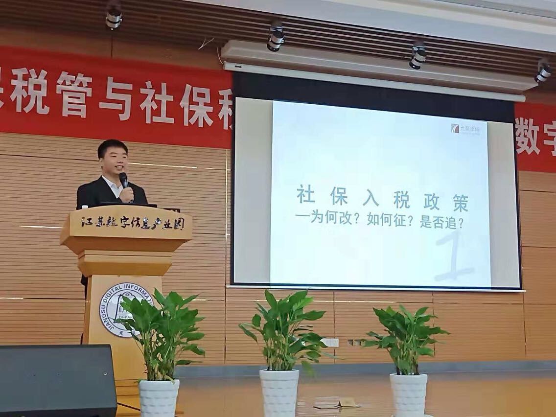 有鑒于此,10月24日下午,江蘇數(shù)字信息產(chǎn)業(yè)園在清華創(chuàng)新大廈輔樓一樓報(bào)告廳舉行《社保稅管與社保稅費(fèi)籌劃思路解析》主題分享活動(dòng),特邀江蘇元聚律師事務(wù)所趙健和肖建峰律師分別從勞動(dòng)法角度及稅法角度,解讀社保入稅政策對(duì)企業(yè)的影響及應(yīng)對(duì)思路,實(shí)例分享籌劃方案。