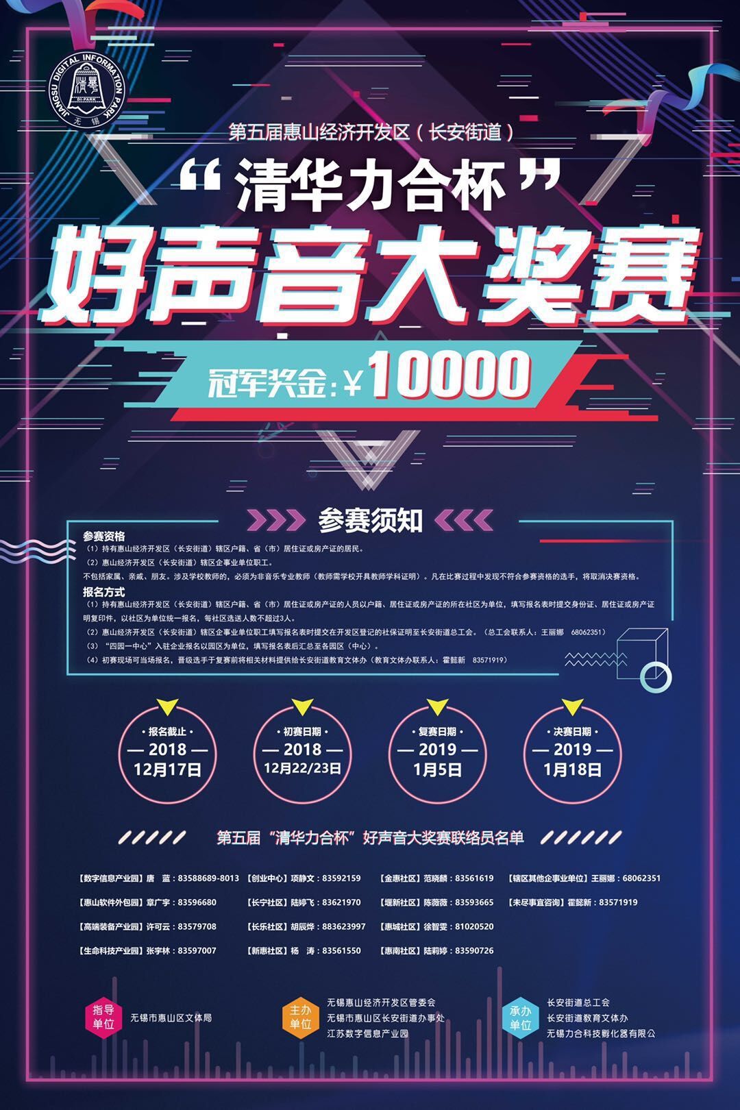 【活動通知】第五屆惠山經(jīng)濟(jì)開發(fā)區(qū)(長安街道)“清華力合杯”好聲音大獎賽來啦!