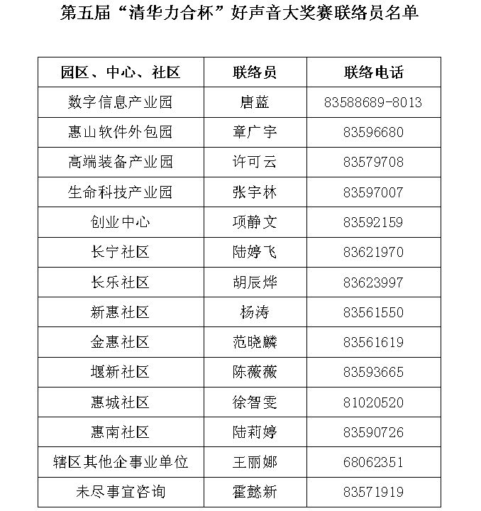 為滿足人民群眾公共文化需求、提升惠山經(jīng)濟(jì)開發(fā)區(qū)(長安街道)文化軟實(shí)力,體現(xiàn)科技園區(qū)朝氣蓬勃的精神風(fēng)貌,為廣大歌唱愛好者搭建一個展示才藝的舞臺,擬舉辦第五屆“清華力合杯”惠山新城好聲音大獎賽,有關(guān)事項(xiàng)安排如下: