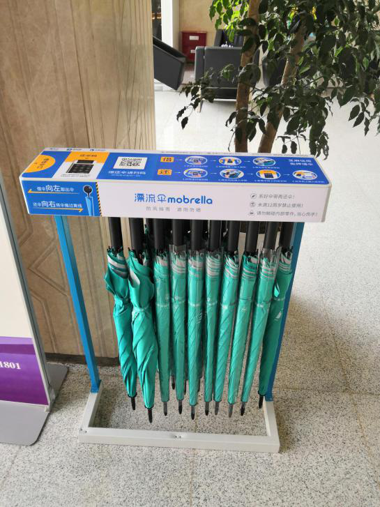 清華創(chuàng)新大廈一樓放置了防曬漂流傘