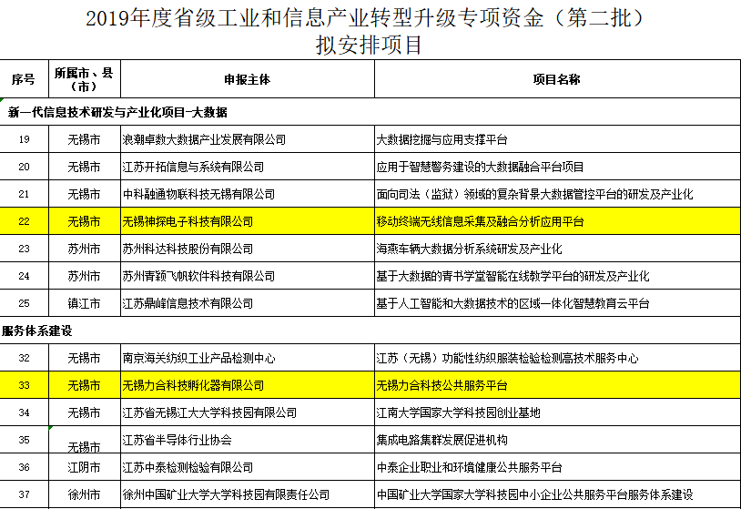 日前,江蘇省工業和信息化廳對2019年度省級工業和信息產業轉型升級專項資金(第二批)擬安排項目進行公示,數字園和神探電子分別入選“服務體系建設項目”和“新一代信息技術研發與產業化項目-大數據”。