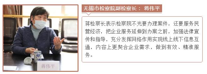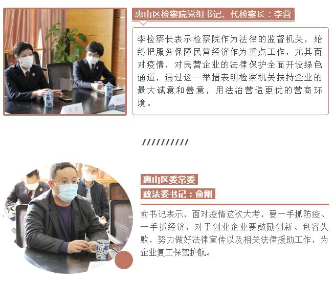 無錫市及惠山區(qū)檢察院在疫情防控的關(guān)鍵時(shí)期主動(dòng)走進(jìn)園區(qū)、深入企業(yè),為入園企業(yè)實(shí)時(shí)提供法律咨詢、政策宣導(dǎo)、糾紛調(diào)解等司法服務(wù)和援助保障,園區(qū)和企業(yè)感受到了公檢法機(jī)構(gòu)主動(dòng)服務(wù)民營企業(yè)的關(guān)懷與用心。