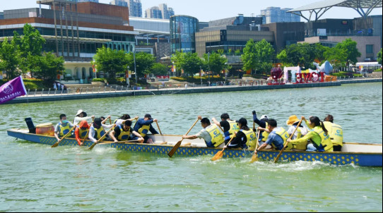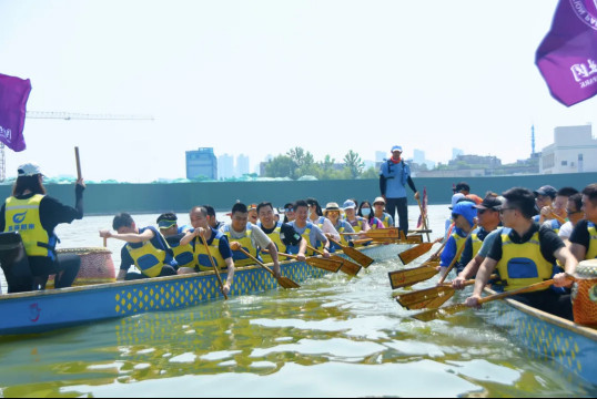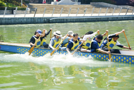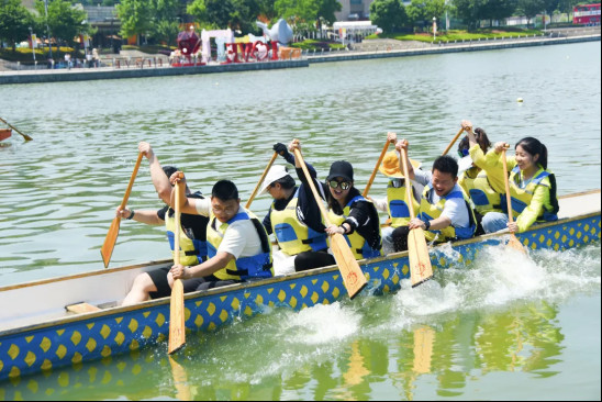 無龍舟不端午,本次團建活動由龍舟競速和龍舟拔河兩場水上競技組成,在“掌舵者”及“槳手”的通力合作下,帶來了一場“雙舸爭流碧波蕩,乘風破浪正當時”的精彩比拼。