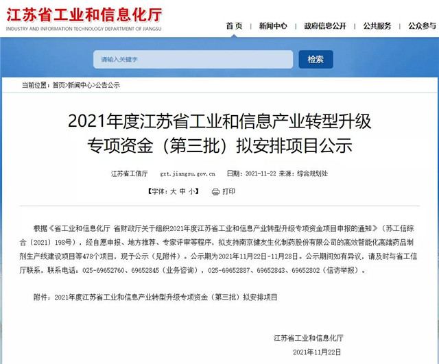 喜訊| 3家入園企業成功獲批2021年度江蘇省工業和信息產業轉型升級專項資金