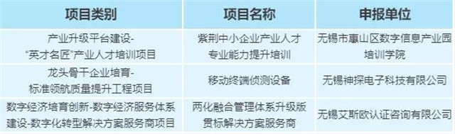 近日,江蘇省工信廳公示了2021年度江蘇省工業和信息產業轉型升級專項資金(第三批)擬安排項目名單,無錫市惠山區數字信息產業園培訓學院榮獲產業升級平臺建設類獎勵,入園企業無錫神探電子科技有限公司和無錫艾斯歐認證咨詢有限公司分別榮獲龍頭骨干企業培育類和數字經濟培育創新類獎勵。