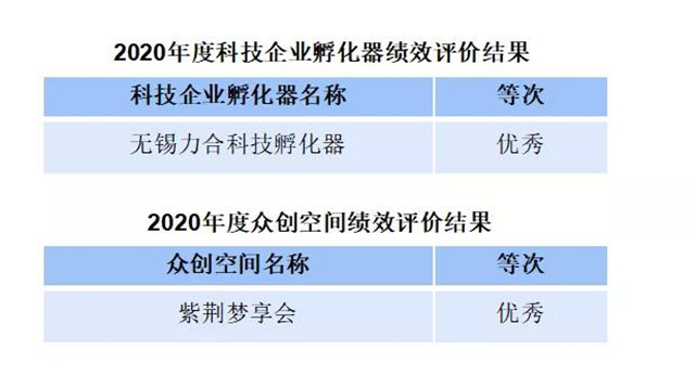 喜訊|雙優肯定!無錫力合科技孵化器與紫荊夢享會榮獲2020年度無錫市科技企業孵化載體績效評價優秀