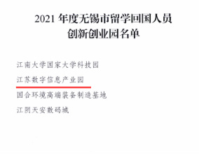 喜訊|江蘇數字信息產業園入選無錫市留學回國人員創新創業園