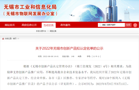 近日,無錫市工信局公示了2022年無錫市創新產品認定名單,入園企業森標科技、神探電子、邦能超聲、聚新科技、申泰新能源的6項產品成功獲評新一代信息技術、高端裝備、高端紡織、新能源等重點產業領域創新產品。