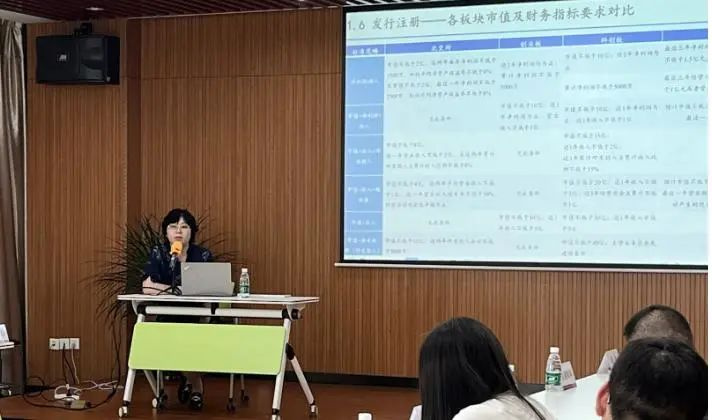 本次活動由華英證券有限公司業(yè)務(wù)總監(jiān)付玉嬌女士作重點分享,主要圍繞多層次資本市場基本情況及現(xiàn)狀、注冊制改革政策實施情況、對中小企業(yè)融資方式產(chǎn)生的影響、企業(yè)上市板塊選擇及上市重點關(guān)注的問題等方面進行了詳細介紹,通過結(jié)合案例分析讓在座企業(yè)家對IPO這項長期系統(tǒng)工程有了更全面的認知。付總監(jiān)強調(diào),注冊制改革是漸進式、系統(tǒng)性的改革,未來將為中小企業(yè)股權(quán)融資提供更好的通道與空間,參會企業(yè)紛紛表示受益良多。
