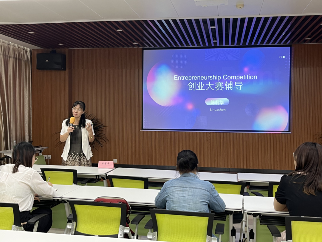 輔導會現(xiàn)場,各參賽項目踴躍發(fā)問。陳老師通過分析項目路演ppt,與項目負責人一對一交流,幫助參賽項目捋順路演思路、挖掘項目亮點,提振參賽信心。
