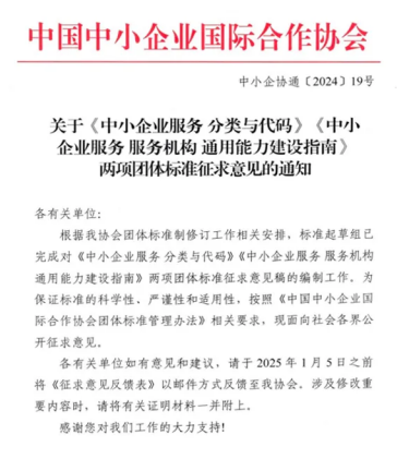《中小企業服務 服務機構 通用能力建設指南》團體標準邀您獻策!