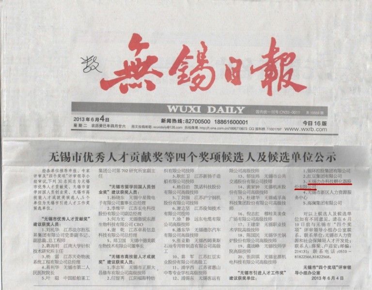 力合孵化器獲“無錫市引進(jìn)人才工作獎(jiǎng)”提名