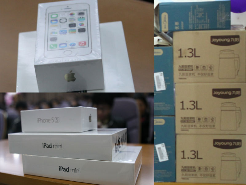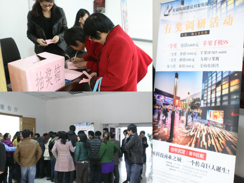 為更好的為大家提供優質的配套,無錫科城建設開發有限公司前期開展了相關的調研活動,得到了園區企業白領及周邊社區居民的積極響應,為答謝相關人員對調研活動的支持,科城建設對前期參與科城·商業綜合體調研問卷的被調研者設置了四類獎項,其中:一等獎1名,獎品為價值6800元的蘋果5S土豪金手機;二等獎2名,獎品為價值3000元的蘋果ipadmini;三等獎3名,獎品為價值500元的九陽豆漿機;參與獎3名,獎品為價值300元美的電餅鐺。