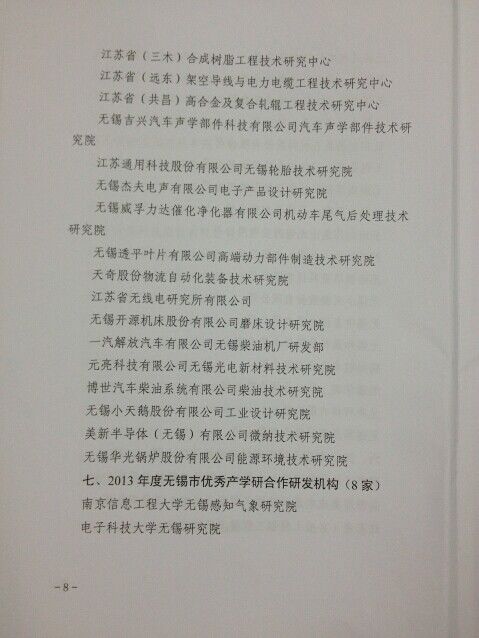 園區獲“2013年度無錫市優秀產學研合作研發機構”表彰