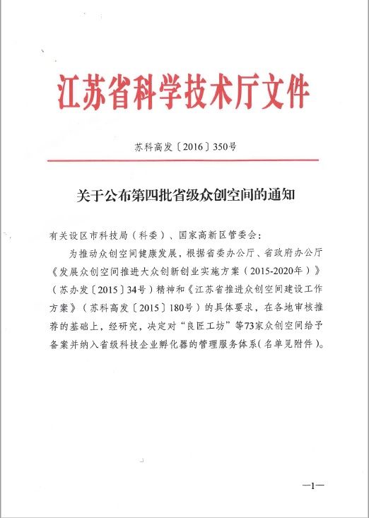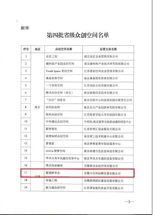 恭喜無錫力合科技孵化器有限公司的紫荊夢享會榮獲省級眾創空間稱號!