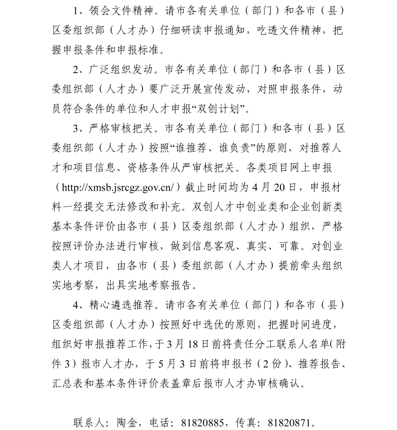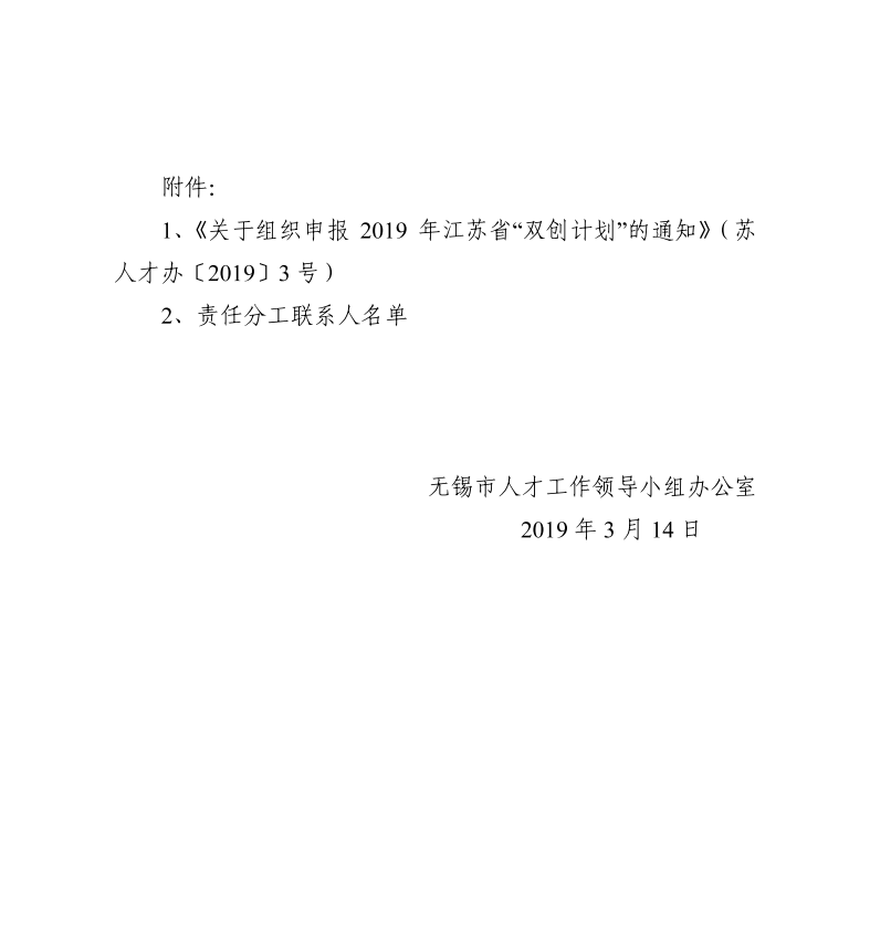 【申報通知】關于轉發省人才辦《關于組織申報2019年江蘇省“雙創計劃”的通知》的通知